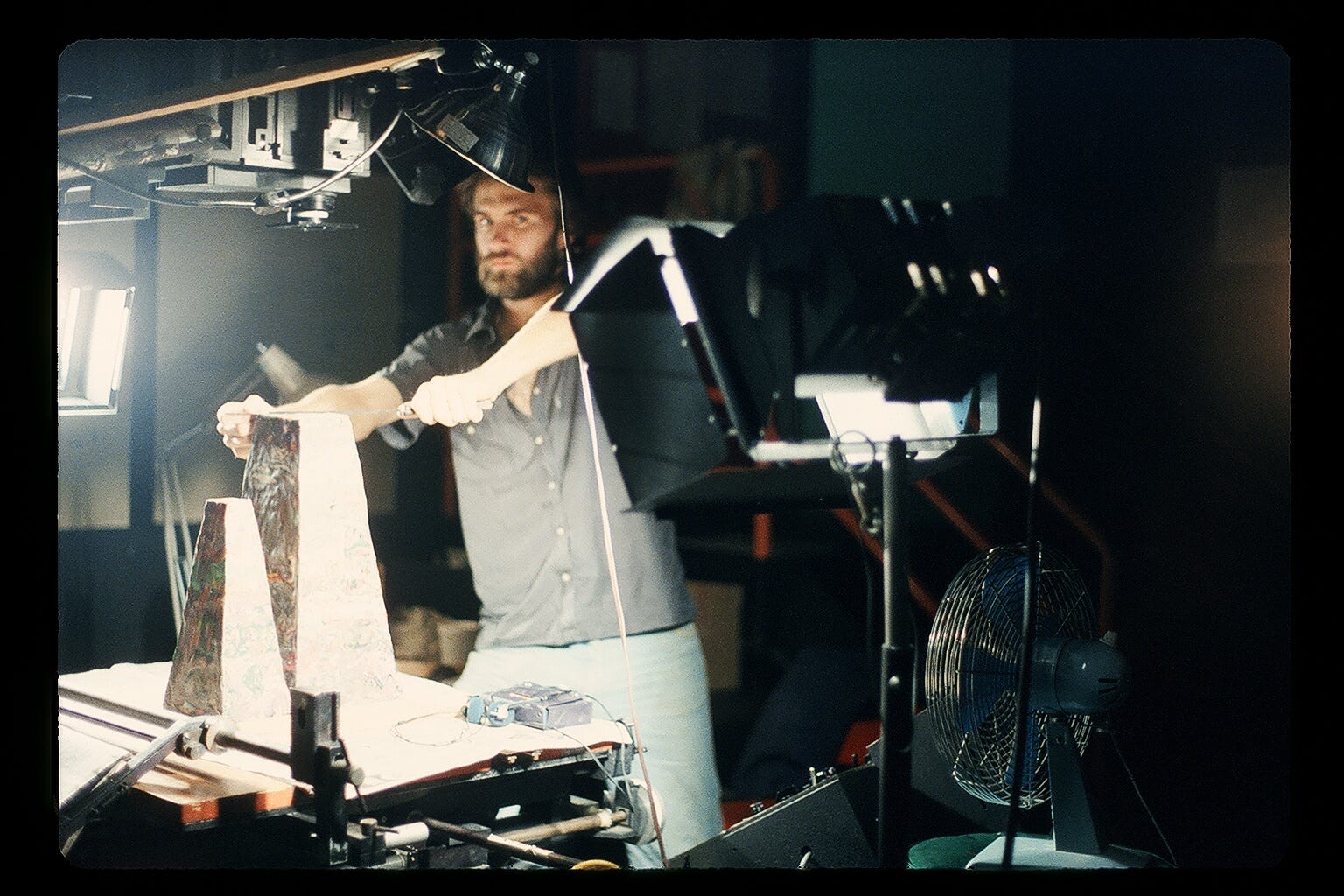 Actually the moment stratacut was invented was when I was eight and it was my birthday. My sister made a cake out of clay, which would be little quarter or half dollar size pieces of yellow and blue. She put a yellow flat pancake on a blue flat pancake and another yellow, another blue, she made layers and wrapped it up with icing. When she cut it open, all of the layers existed. I was eight when this happened. There was a pristine-ness to the flat cut patterning. I knew that that was an incredible thing, but I didn’t know what to do with it. It was a time-slows-down moment for me.
